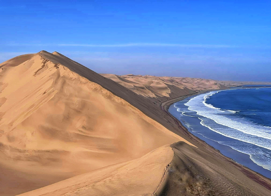 Experience the beauty of the ocean and the desert on a full day Marine Dune Combo. Let’s set sail on a morning cruise in the harbour of Walvis Bay follow by an adventure afternoon through the sand sea landscape of Sandwich Harbour. Start your day on a relay boat cruise exploring the Walvis Bay marine life and various stops like the oyster farms and Pelican Point with seals and pelicans joining you on board. Enjoying a light brunch, oysters, and sparkling wine. Return back to your meeting point and hop on a 4×4 vehicle with your guide which will take you directly to Sandwich Harbour where you can admire the magnificent stretch of dune landscapes meeting the endless Atlantic Ocean. A light lunch with sparkling wine will be enjoyed on top of the many dunes before heading back to Walvis Bay.