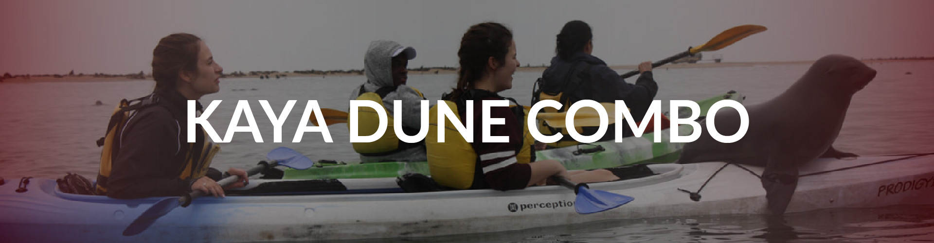 Enjoy an adventures filled day with kayaking in the morning amongst thousands of cape fur seals, before venturing to the oldest desert in a 4×4. Experience an early morning paddle with some playful seals and if luck permits dolphins & whales at the tip of Pelican Point Peninsula. The tour starts from Walvis Bay following a one hour scenic drive in a 4×4 vehicle along the Walvis Bay Lagoon with its countless flamingos and pelicans and the larges salt mines with its pink water on your way to Pelican Point. Arriving at Pelican Point you will be greeted by thousands of seals who will join you in in a few minutes after you are briefed and stable seated on a double kayak ready to paddle. After Kayaking, we recharge with some fresh rolls and hot beverages. From there, you will venture across Pelican Point and Donkey Bay on your way to the magnificent Sandwich Harbour, where an endless landscape of rolling dunes awaits. A light lunch with sparkling wine will be enjoyed on top of the many dunes before heading back to Walvis Bay, where your tour will conclude.